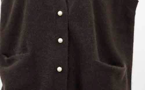 ※ご来店のお客様を優先させて頂きます。在庫確認の為に必ずクラブハウスへご連絡下さい(電話096-387-5570 メール[email protected])自分ご褒美プチ贅沢ベスト。パールボタンのベストはウール・フォックス混紡。着丈の目安はスタッフの身長168cm。チョコ、チャコール、ベージュ、ブラック