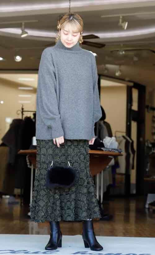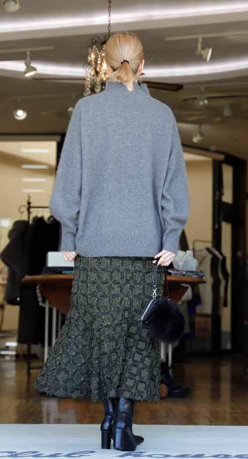 ※ご来店のお客様を優先させて頂きます。在庫確認の為に必ずクラブハウスへご連絡下さい(電話096-387-5570 メール[email protected]) ゆるりのハイネックは後ろにスリット入り。袖元ゆるりのシルエットです。ウール・フォックス・ナイロン。着丈の目安はスタッフの身長168cm。グレー、モカ