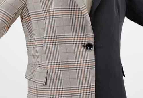 ※ご来店のお客様を優先させて頂きます。在庫確認の為に必ずクラブハウスへご連絡下さい(電話096-387-5570 メール[email protected])ジャケットの右はベージュ系のグレンチェックで左はブラック無地。ポリエステル。着丈の目安はスタッフの身長168cm。