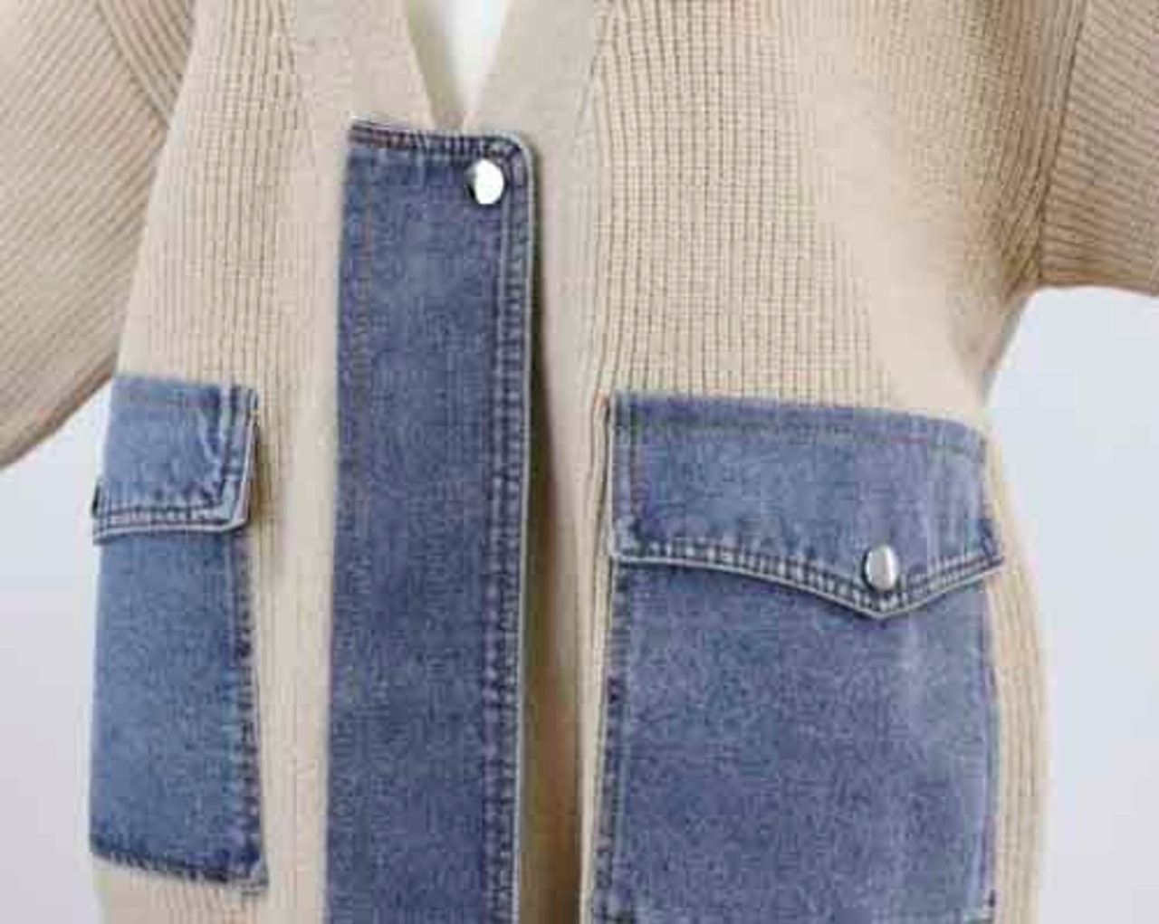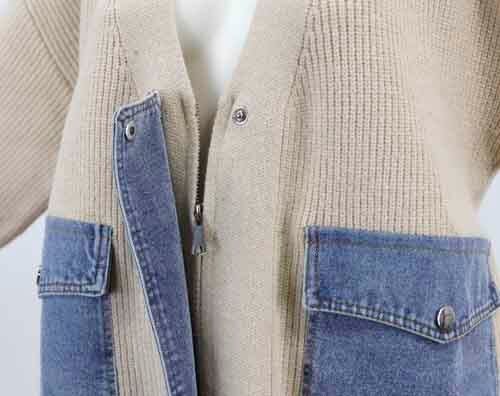 ※ご来店のお客様を優先させて頂きます。在庫確認の為に必ずクラブハウスへご連絡下さい(電話096-387-5570 メール[email protected]) 畦のVネックカーディガンにデニムドッキング。フロントはファスナー開きにデニムドッキング。スマホもすっぽりのポケット付き。着丈の目安はスタッフの身長168cm。ベージュ、グレー、ブラック