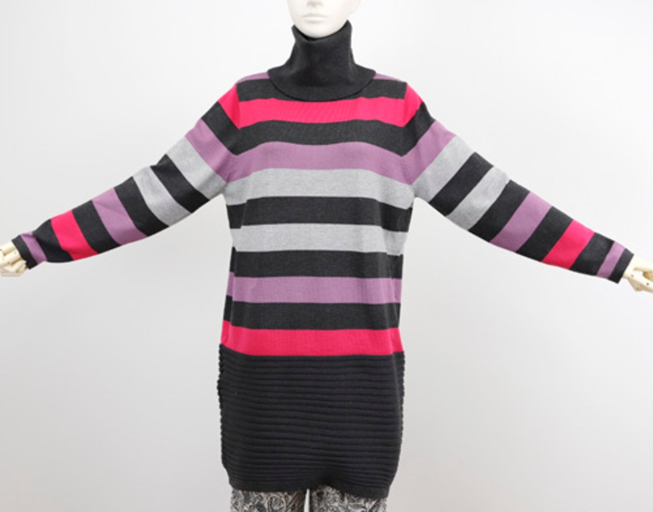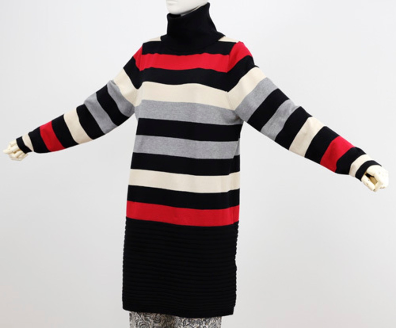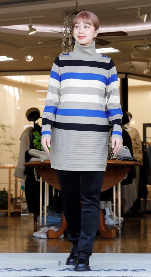 23-25931 マルチボーダーのタートルネックチュニック 5カラー