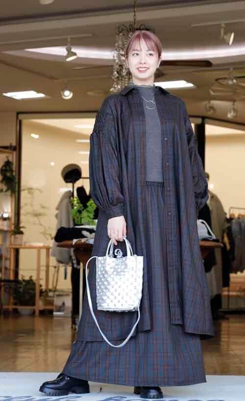 45-H325309 ダークチェックのシャツワンピース 2カラー