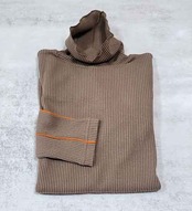 ※ご来店のお客様を優先させて頂きます。在庫確認の為に必ずクラブハウスへご連絡下さい(電話096-387-5570 メール[email protected]) 伸び伸びで肌触りのいいハイネックです。コートを脱いでもおしゃれ。アクリル・レーヨン・ナイロン・ポリウレタン。着丈の目安はスタッフの身長168cm。ホワイトにブラックライン、レッドにはネイビーライン、ライトグレーにはオレンジライン、ブラウンにはオレンジライン、ネイビーにイエローライン、グレージュにブルーライン、パウダーピンクにグリーンライン、ブルーグレーにピンクライン