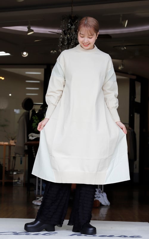※ご来店のお客様を優先させて頂きます。在庫確認の為に必ずクラブハウスへご連絡下さい(電話096-387-5570 メール[email protected]) ふっくら袖のワンピースは裾フレアー。肩と裾の両脇にナイロンコンビ。着丈の目安はスタッフの身長168cm。ふりふりパンツは4カラー(¥15180)ベージュ、ブラック