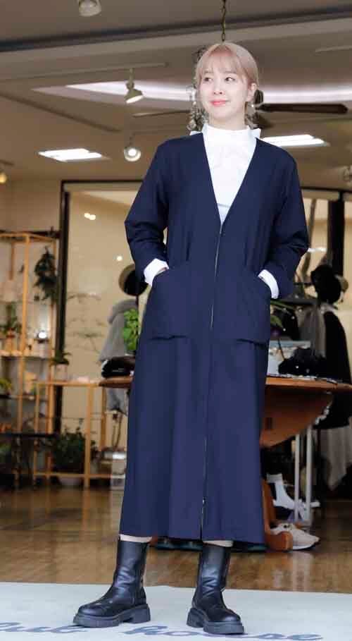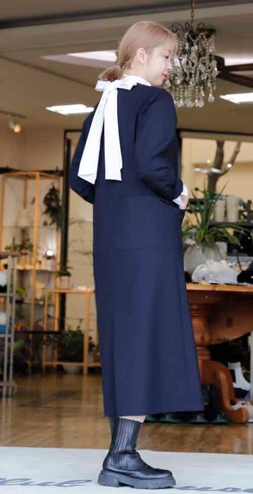※ご来店のお客様を優先させて頂きます。在庫確認の為に必ずクラブハウスへご連絡下さい(電話096-387-5570 メール[email protected]) やや深めのVネックワンピースはフロントに上下に開閉のダブルファスナー。後ろにスリット。両脇にポケット。ポリエステル・レーヨン・ウール・ポリウレタン。着丈の目安はスタッフの身長168cm。アウターでも活躍です。ブラック
