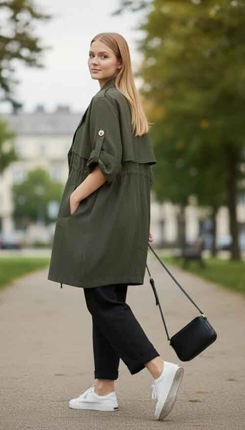 25-16044A ロールアップスリーブのトレンチコート 3カラー