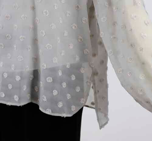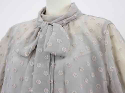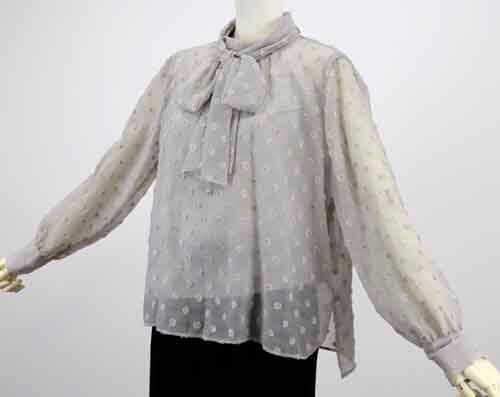 ※ご来店のお客様を優先させて頂きます。在庫確認の為に必ずクラブハウスへご連絡下さい(電話096-387-5570 メール[email protected]) 金糸使いのモチーフブラウスはボータイとキャミソール付きです。ポリエステル・ナイロン・コットン・キュプラ。着丈の目安はスタッフの身長168cm。ライトグレー、ホワイト