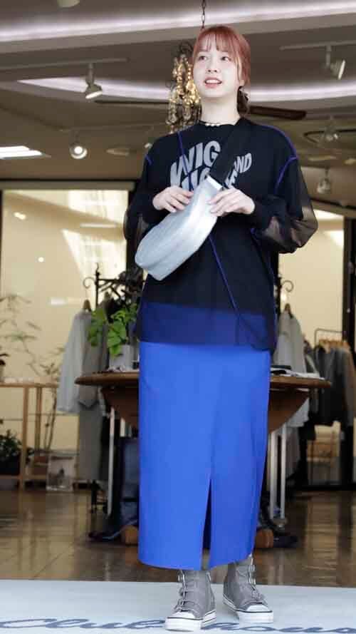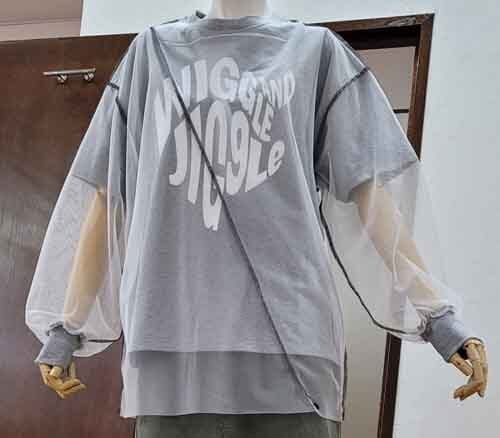 ※ご来店のお客様を優先させて頂きます。在庫確認の為に必ずクラブハウスへご連絡下さい(電話096-387-5570 メール[email protected])胸元にビッグロゴのTeeにカラーパイピングの長袖チュール重ね。グレーのTeeにホワイトチュール、ブラックTeeにブラックチュール