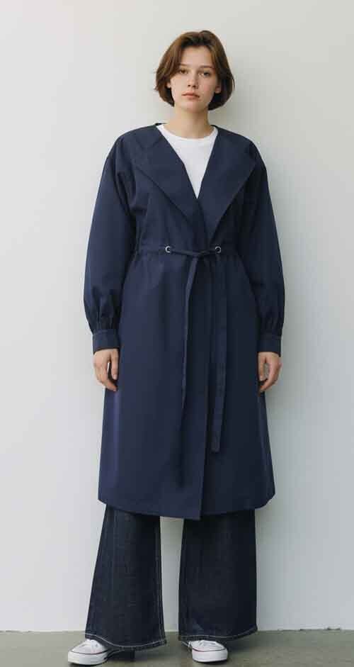 17-905-125945 ノーカラースプリングコート ドロストベルト