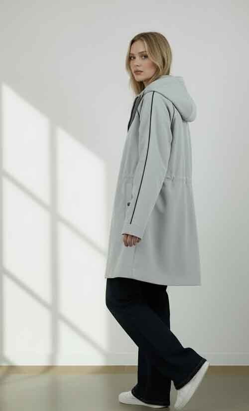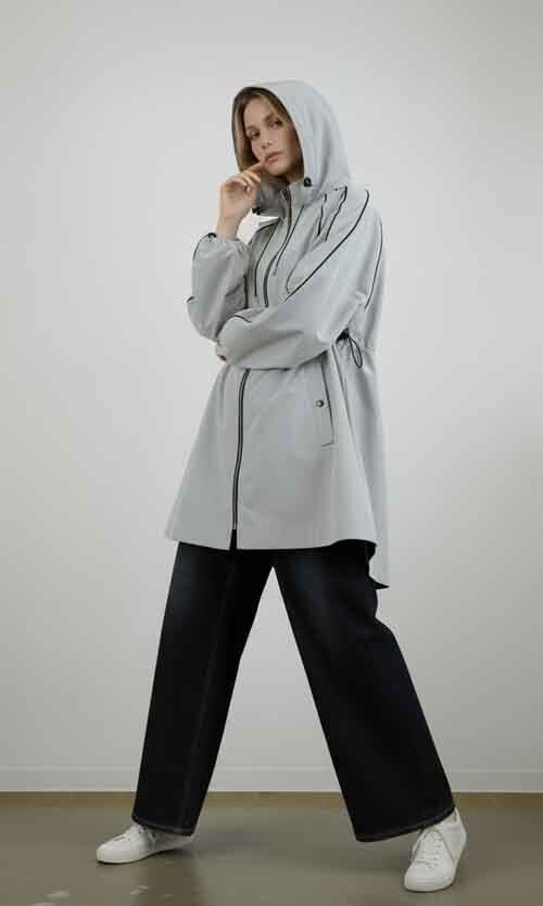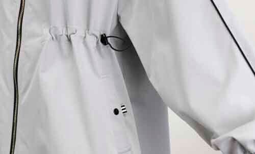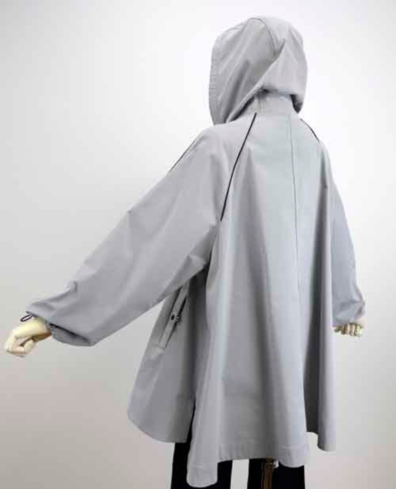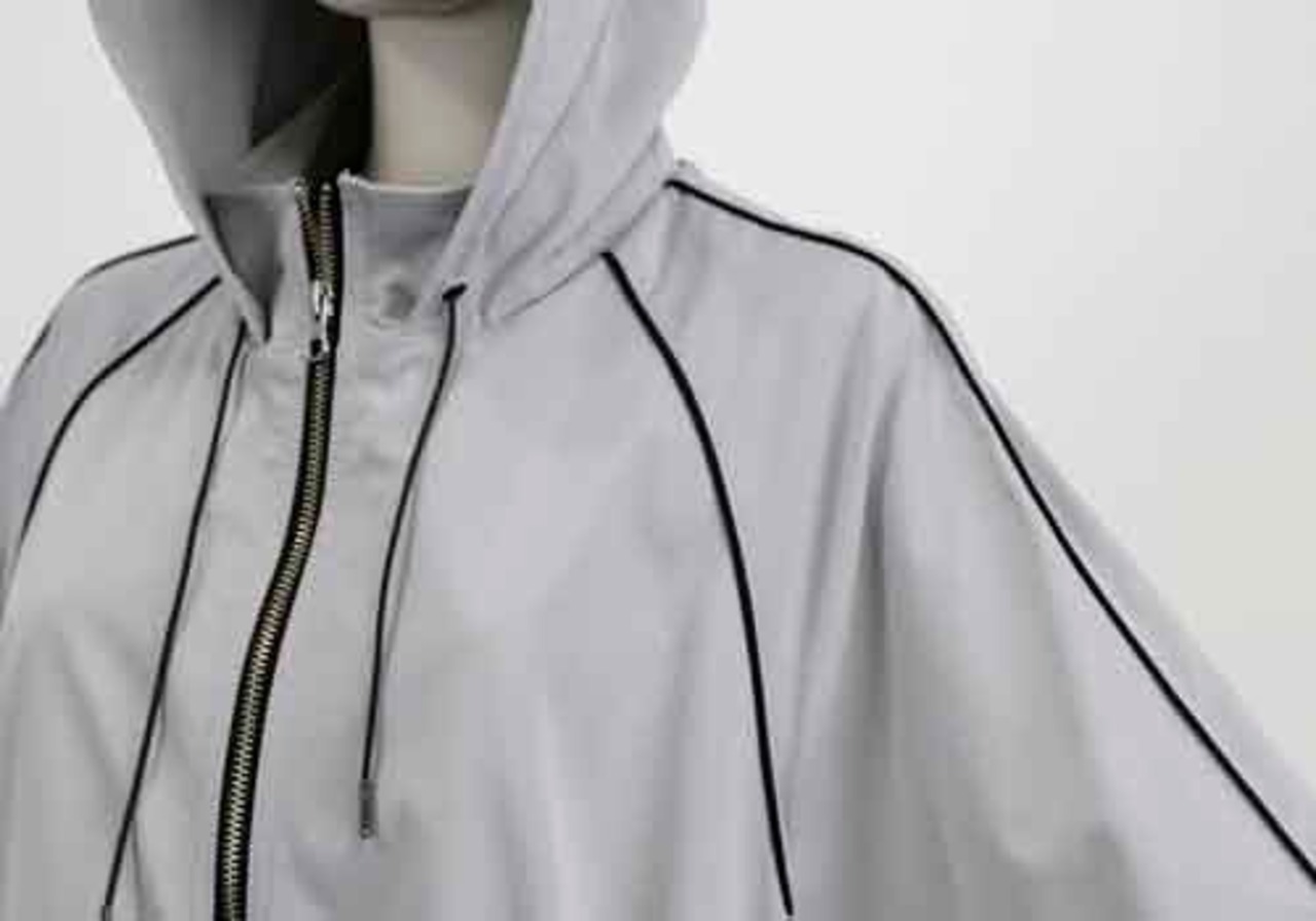 ※ご来店のお客様を優先させて頂きます。在庫確認の為に必ずクラブハウスへご連絡下さい(電話096-387-5570 メール[email protected]) ポリエステルのマウンテンパーカ。袖とラグランラインにパイピング。ウエストにドロストデザイン。ライトグレー。