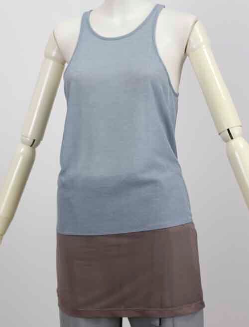 ※ご来店のお客様を優先させて頂きます。在庫確認の為に必ずクラブハウスへご連絡下さい(電話096-387-5570 メール[email protected]) ショート丈の長袖のプルオーバーとロングタンクトップのセットです。ブルーとブラウンチュールコンビ