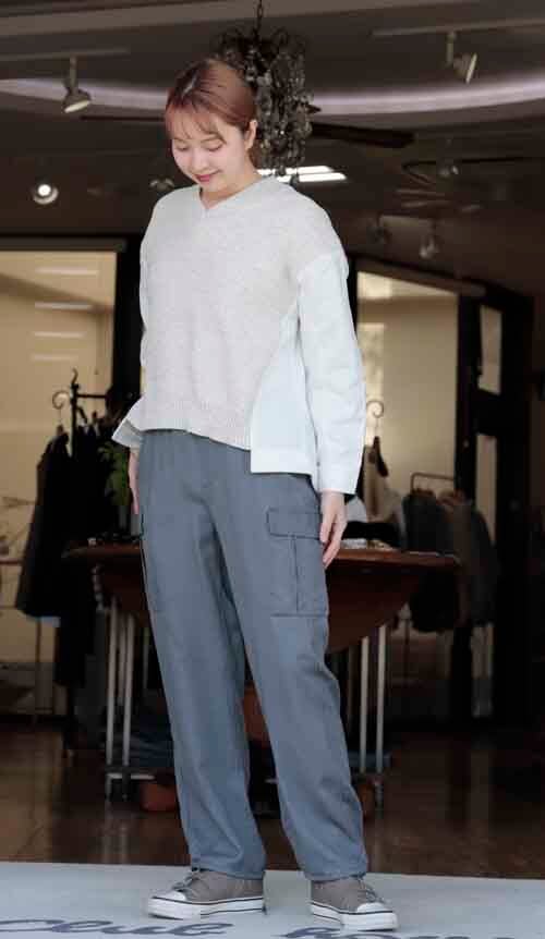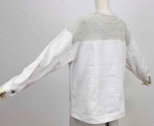 ※ご来店のお客様を優先させて頂きます。在庫確認の為に必ずクラブハウスへご連絡下さい(電話096-387-5570 メール[email protected])ミックス編みセーターにデニムのドッキングデザイン。袖口はカフス。着丈の目安はスタッフの身長168cm。2カラー(ホワイト、ブルー