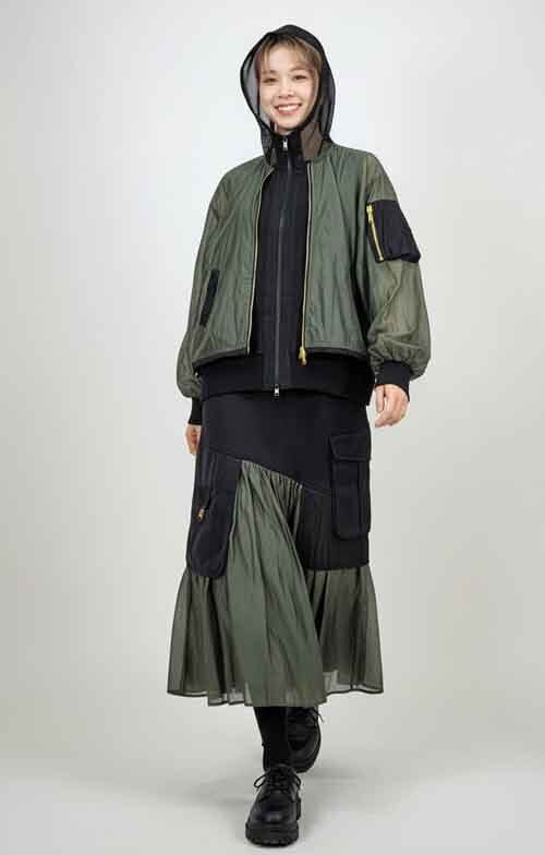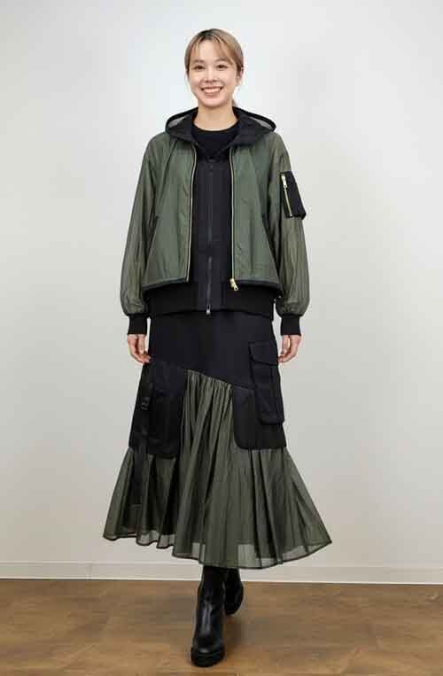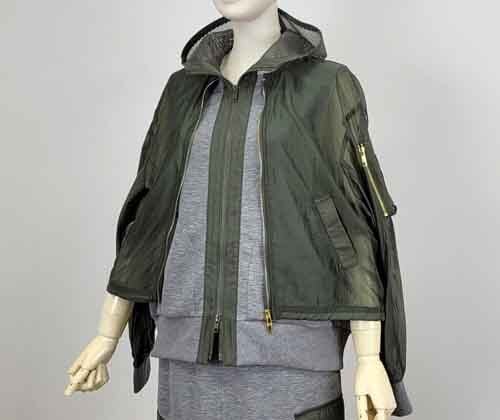 ※ご来店のお客様を優先させて頂きます。在庫確認の為に必ずクラブハウスへご連絡下さい(電話096-387-5570 メール[email protected]) 肩掛けスタイルもOKのドッキングデザインブルゾン。ミリタリーのシアーブルゾンの中はメッシュフードのカットソーベストです。