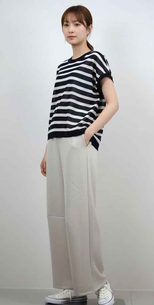 18-72692348 バルーンシルエットのボーダーセーター 2カラー