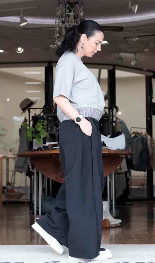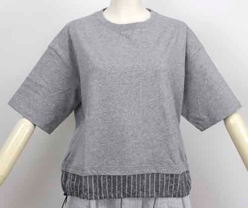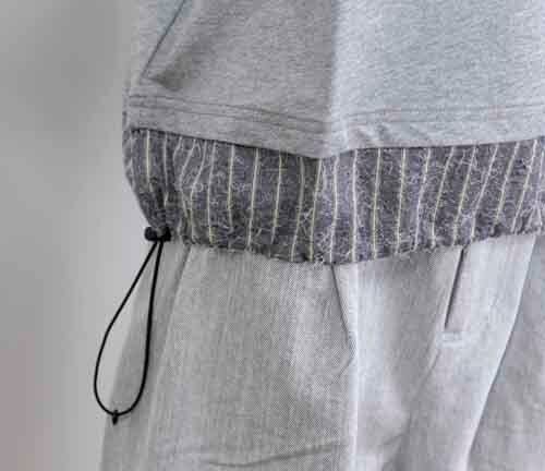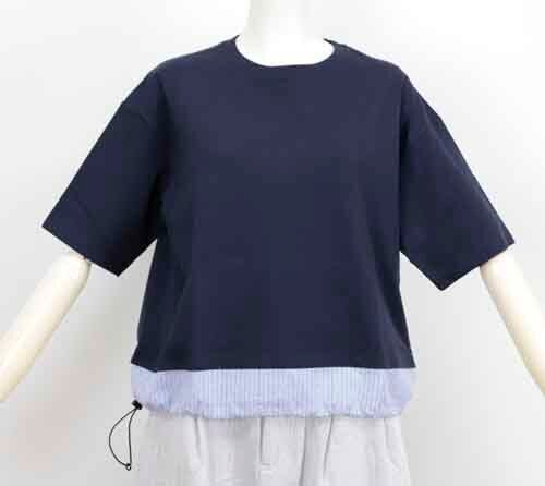 ※ご来店のお客様を優先させて頂きます。在庫確認の為に必ずクラブハウスへご連絡下さい(電話096-387-5570 メール[email protected])背中にレタープリントの半袖Teeは裾にストライプコンビで両脇にゴムのドロスト。2カラー(ライトグレー、ネイビー