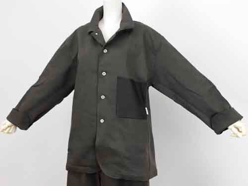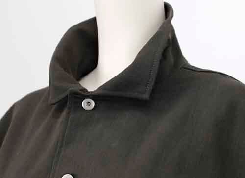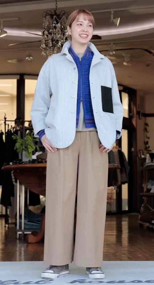 ※ご来店のお客様を優先させて頂きます。在庫確認の為に必ずクラブハウスへご連絡下さい(電話096-387-5570 メール[email protected])軽い柔らかストレッチのデニムジャケットです。ワイヤー入りの襟は自在にカタチを変えて楽しめます。左の胸ポケットは山羊革。肘の内側にユーズド加工。コットン・ポリエステル。着丈の目安はスタッフの身長168cm。3カラー(カーキ、ネイビー、ホワイトブラックミックス