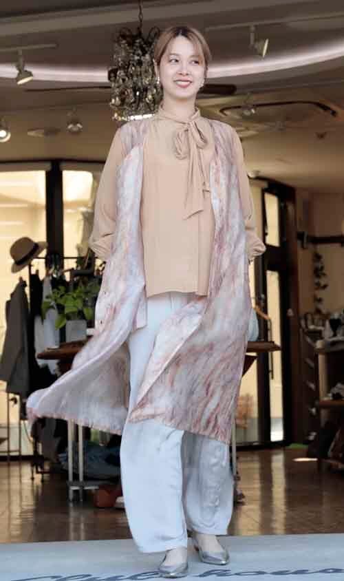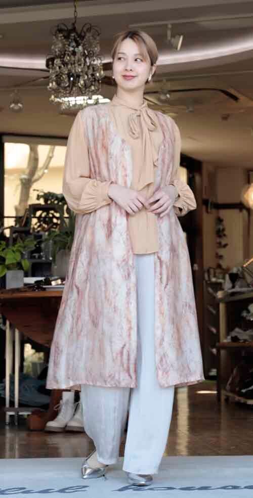 ※ご来店のお客様を優先させて頂きます。ご購入の前に在庫確認の為に必ずクラブハウスへご連絡下さい(電話096-387-5570 メール[email protected]) 心地いい風にふわり。ロングベストです。ポリエステル・ナイロン・リネンの軽く薄い素材。フロントのボタンを閉めてワンピースでもOK!着丈の目安はスタッフの身長168cm。2カラー(オレンジ系、グレー系
