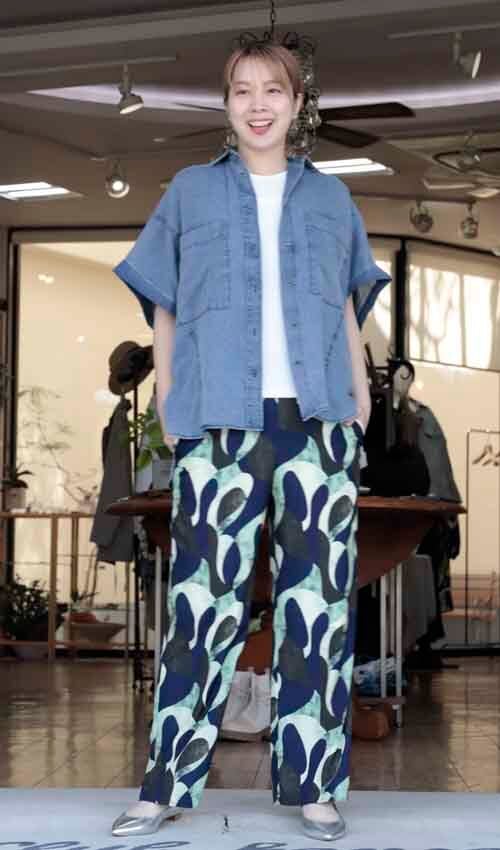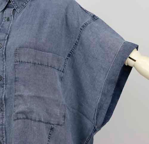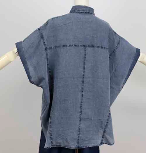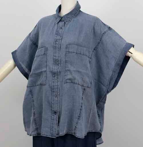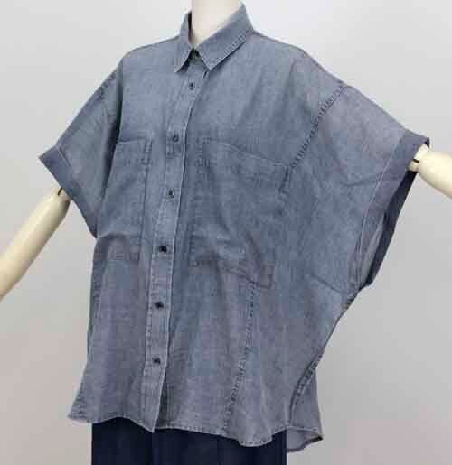 5-12146055 コットンガーゼのデニムカラーポンチョデザインシャツ 3カラー