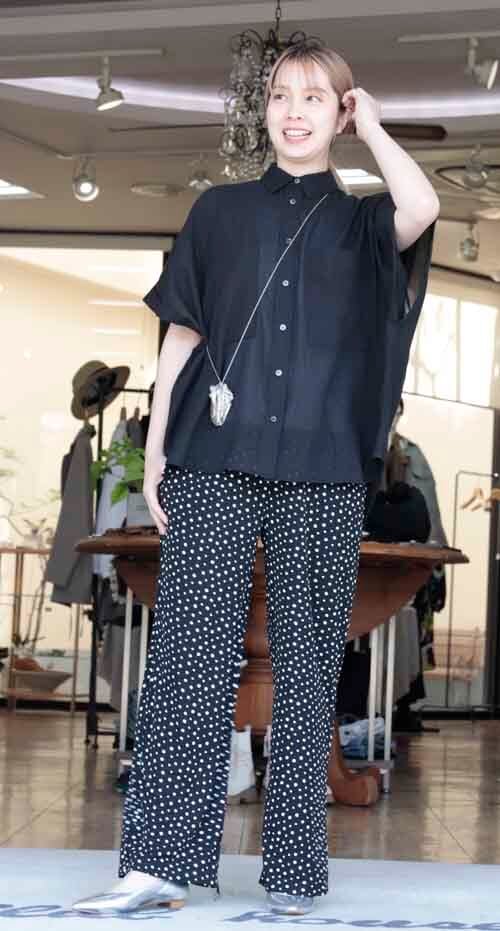 ※ご来店のお客様を優先させて頂きます。ご購入の前に在庫確認の為に必ずクラブハウスへご連絡下さい(電話096-387-5570 メール[email protected]) 身頃ゆったりのポンチョデザインシャツです。柔らか薄いコットンガーゼ。胸元に大きめのポケット。着丈の目安はスタッフの身長168cm。3カラー(グレーデニムカラー、ブルーデニムカラー、ブラック