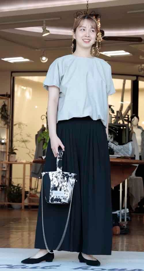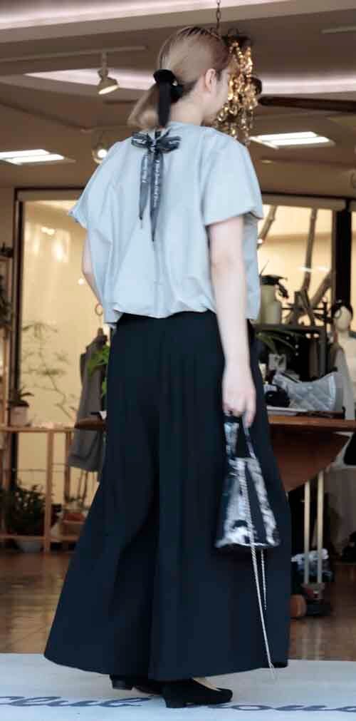 ※ご来店のお客様を優先させて頂きます。ご購入の前に在庫確認の為に必ずクラブハウスへご連絡下さい(電話096-387-5570 メール[email protected]) ふっくらバルーンシルエットのブラウスです。袖と裾は裏地へ縫い替えしふっくら。ネックの後ろにオーガンジーリボン。着丈の目安はスタッフの身長168cm。2カラー(ライトグレー、ブラック