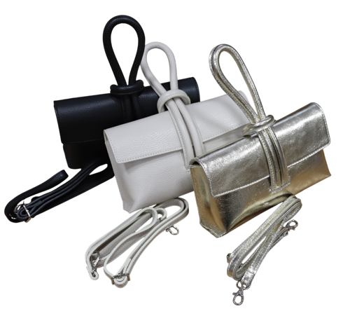 ※ご来店のお客様を優先させて頂きます。ご購入の前に在庫確認の為に必ずクラブハウスへご連絡下さい(電話096-387-5570 メール[email protected]) 再々入荷です。床革のバッグです。ショルダーストラップ付です。巾23cm高さ13cm底5cm。4カラー(ブラック、ライトベージュ、シルバー、ゴールド