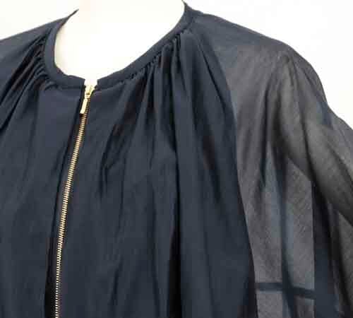 ※ご来店のお客様を優先させて頂きます。ご購入の前に在庫確認の為に必ずクラブハウスへご連絡下さい(電話096-387-5570 メール[email protected]) ゴールドファスナーのシアーブルゾンです。前身頃は裏地付きです。ゆるりバルーンシルエット。ミッドナイトブルー。セルロース・ポリエステル