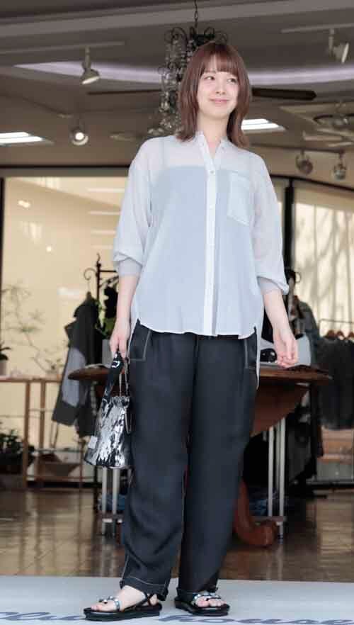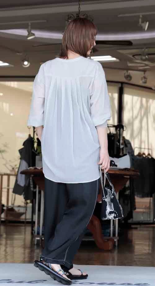 17-LV807506N3 リブ袖のシアーシャツ
