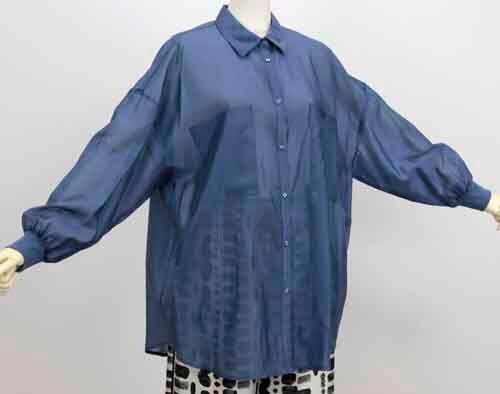 ※ご来店のお客様を優先させて頂きます。ご購入の前に在庫確認の為に必ずクラブハウスへご連絡下さい(電話096-387-5570 メール[email protected]) ドロップショルダーのゆるシルエットシアーシャツ。袖口はリブ。ネックの後ろから裾へタックプリーツ。裾には釦開きのスリット。着丈の目安はスタッフの身長168cm。2カラー(ホワイト、ネイビー)セルロース・ポリエステル