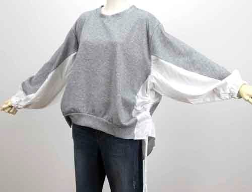 24-1260154 両脇にドロストデザインの異素材コンビスエット 3カラー