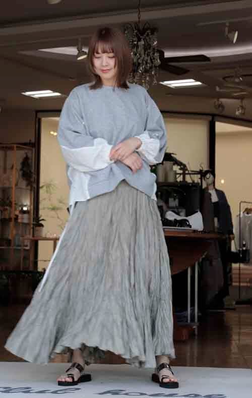 ※ご来店のお客様を優先させて頂きます。ご購入の前に在庫確認の為に必ずクラブハウスへご連絡下さい(電話096-387-5570 メール[email protected]) 両脇のドロストをキュッと。カタチを変えて楽しめます、前から後ろへ長い着丈。スエットと布帛のコンビです。着丈の目安はスタッフの身長168cm。3カラー(ホワイトと布帛ホワイト、グレーと布帛ホワイト、ブラックと布帛ブラック」