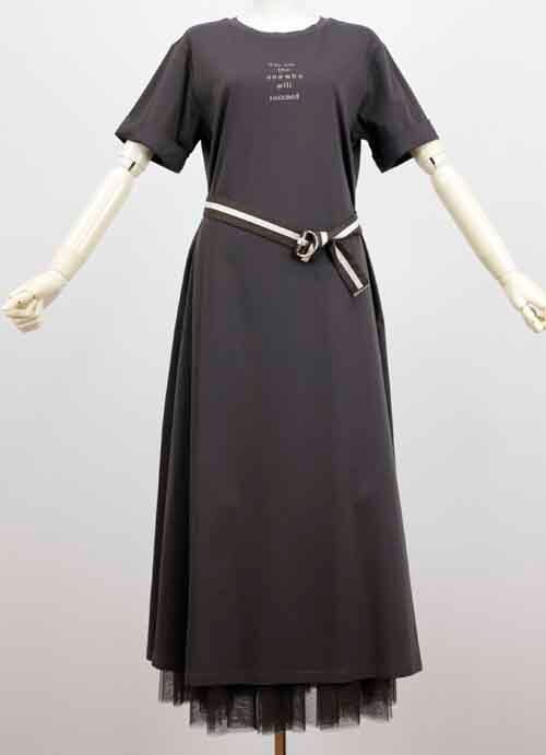 23-26339 天竺ワンピースとチュールペチコートとベルトの3点セット