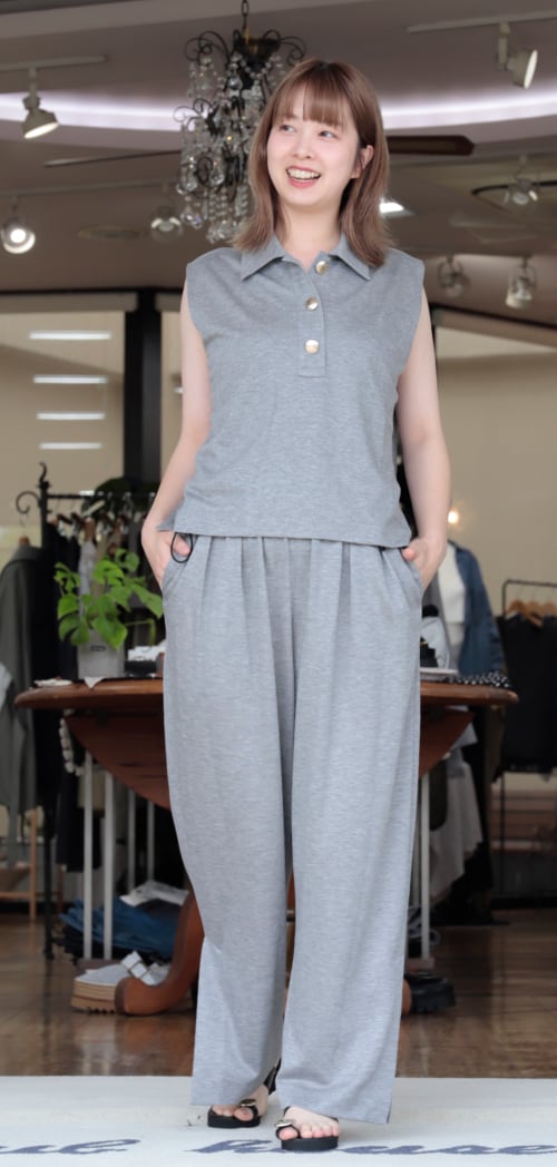 ※ご来店のお客様を優先させて頂きます。ご購入の前に在庫確認の為に必ずクラブハウスへご連絡下さい(電話096-387-5570 メール[email protected])ノースリーブのポロは槌打ちメタルの釦。パンツはドロストをキュッと。裾にはスリット。セルロース。2カラー(グレー、ブラック)ポロ(¥16500)パンツ(¥23100)単品ご購入の際はご連絡ください。