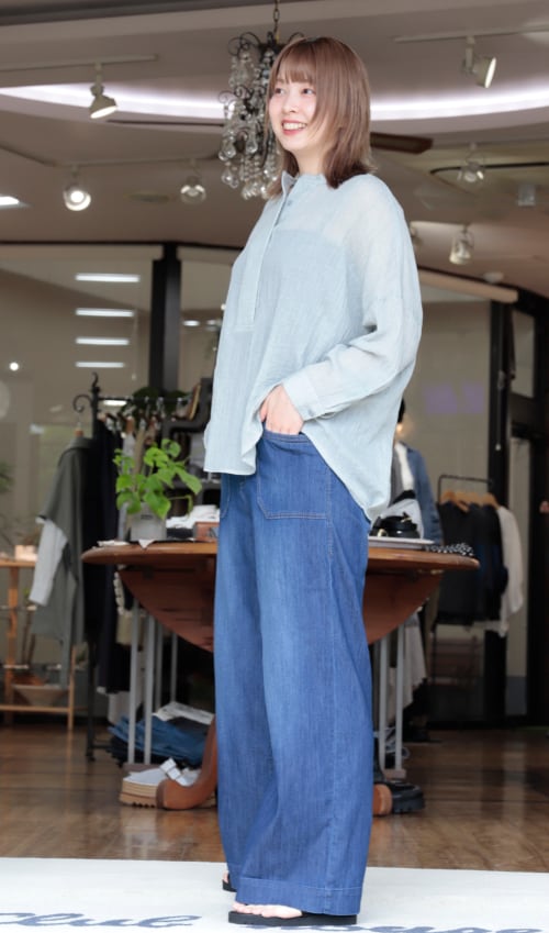 17-502634N3 ゆるシルエットのシアーヘンリーシャツ 2カラー