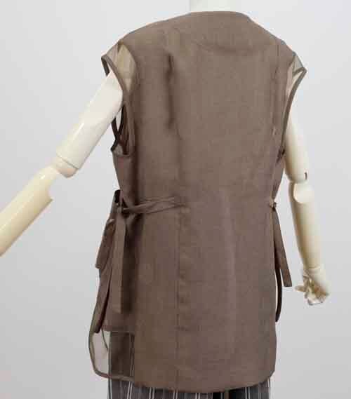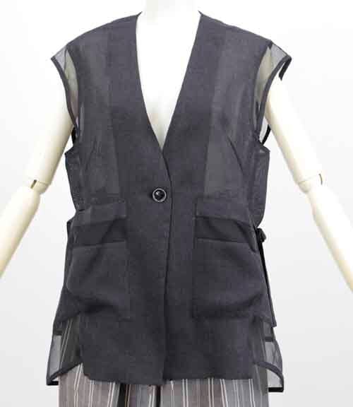 ※ご購入の前に在庫確認の為に必ずクラブハウスへご連絡下さい。実店舗営業の為在庫確認は閉店後になります。ご迷惑をお掛けしますが。送料及び配送手数料は当社負担です。(電話096-387-5570 メール[email protected]) #Lallia Muからオーガンジーコンビのメッシュベスト。スマホもすっぽりのポケット付きで両脇にリボン結び。スタッフの身長168cm。2カラー(ブラウン、ブラック